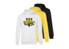 Pánská černá mikina s kapucí s letopočtem založení SK Šlapanice na hrudi podtržené vlnkou a názvem klubu, celé ve žluté barvě.