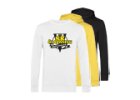 Pánská černá mikina s kapucí s letopočtem založení SK Šlapanice na hrudi podtržené vlnkou a názvem klubu, celé ve žluté barvě.
